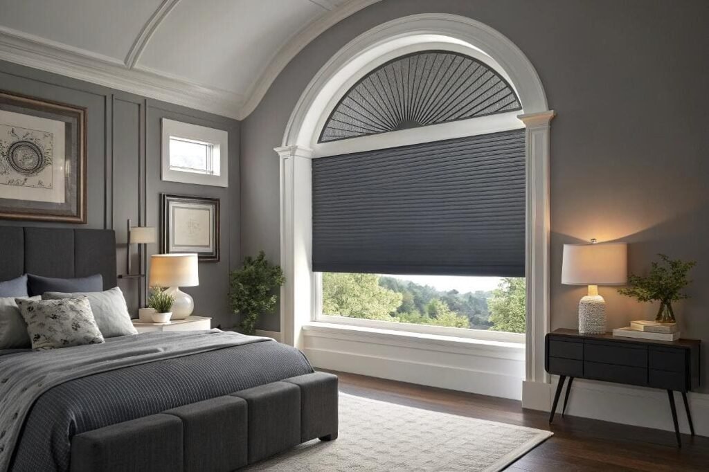 Cellular shades are a top-tier choice for arched windows, offering a custom fit, great insulation, and precise light control. Just remember to clean them gently and keep them out of high-humidity spaces.
