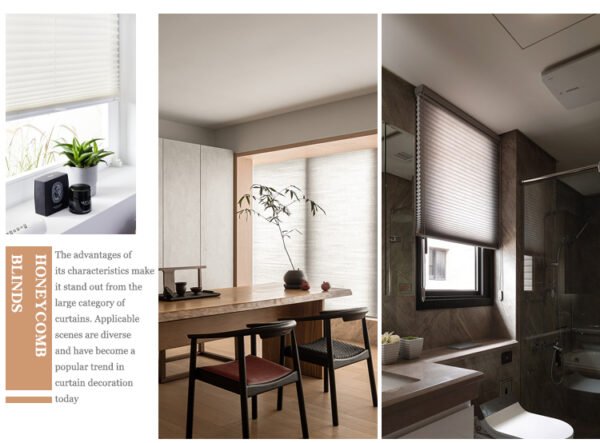 Vela’s Honeycomb Blinds feature a cellular structure that traps air to improve thermal efficiency, minimize noise, and manage natural light with ease. Ideal for homes, offices, hotels, and educational spaces.