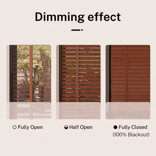 ☀️ Light & Privacy Control – Wide slats allow flexible adjustment of sunlight and visibility.