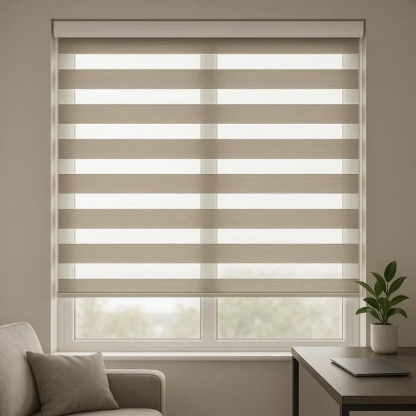 Vela’s Zebra Blinds deliver a unique approach to light and privacy control, blending soft transparency with clean lines for a refined, contemporary atmosphere. Their alternating sheer and solid fabric bands glide effortlessly to shift between open views and complete coverage, creating dynamic visual textures throughout the day. Designed for both home and commercial environments, our zebra blinds offer customizable aesthetics, smooth manual or motorized operation, and compatibility with smart home platforms for intuitive daily comfort.