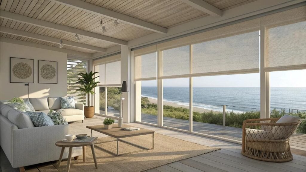 For coastal homes, choose moisture-proof materials like faux wood or PVC. Use solar shades to keep your view, and consider smart motorization for ultimate convenience and energy savings[^15].